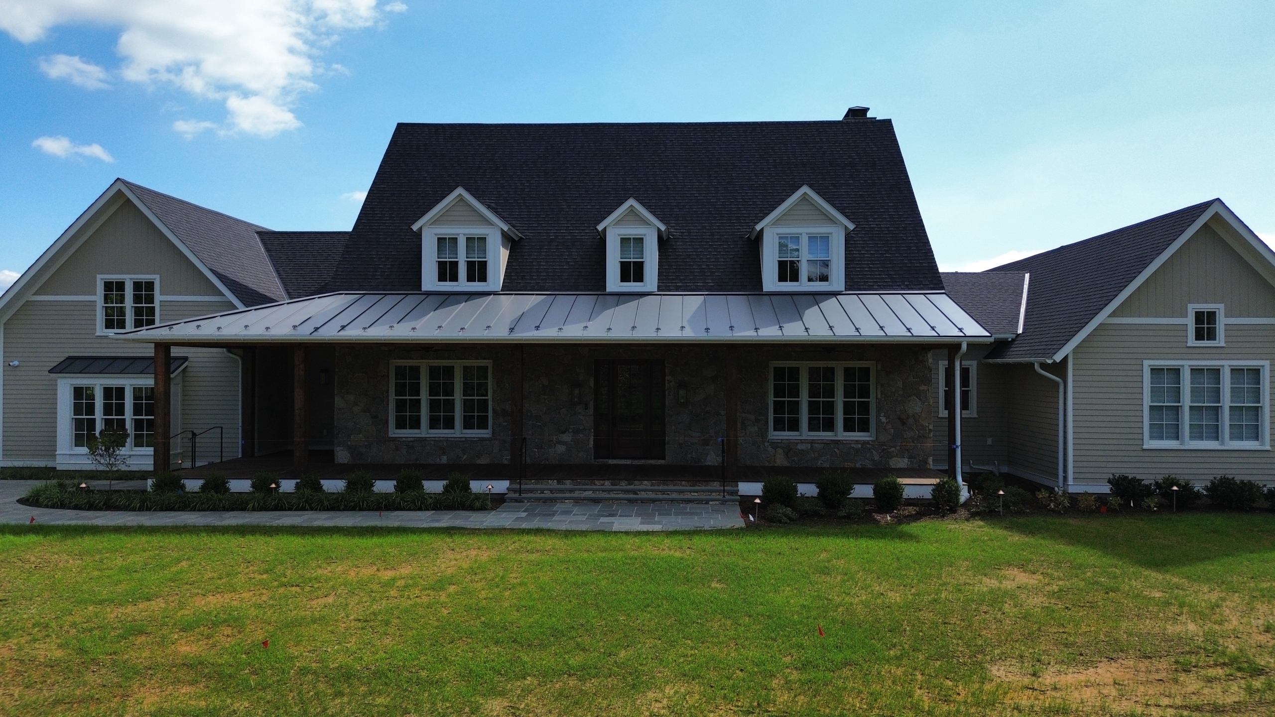 This truly custom home in Aldie, Virginia, showcases thoughtful design and exceptional craftsmanship from every angle. Set on a spacious lot surrounded by natural greenery, the home features a striking roofline with a mix of architectural shingle and standing seam metal accents, creating both visual interest and durability. Expansive outdoor living spaces, elegant stonework, and a seamless blend of modern and classic materials highlight the home’s attention to detail—making it a stunning example of luxury living tailored to its unique setting.